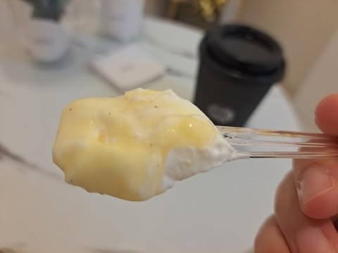 これは…アイス! 中に甘いアイスが入っている。 これは甘いクリーム&甘いアイスで幸せ間違いなしです! (ちなみにアイスが苦手という方は相談していただくとクリームに変更可だそうですよ) しかも今回はほろ苦いコーヒーも一緒にいただいているので