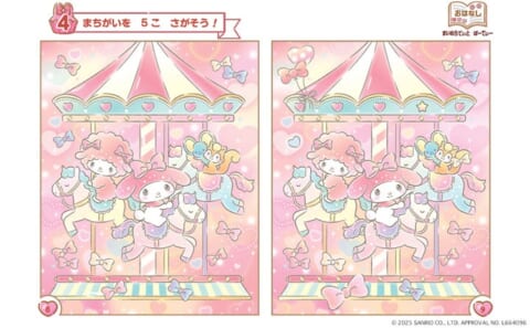 マイメロディ:遊園地で回転木馬に乗る体験。