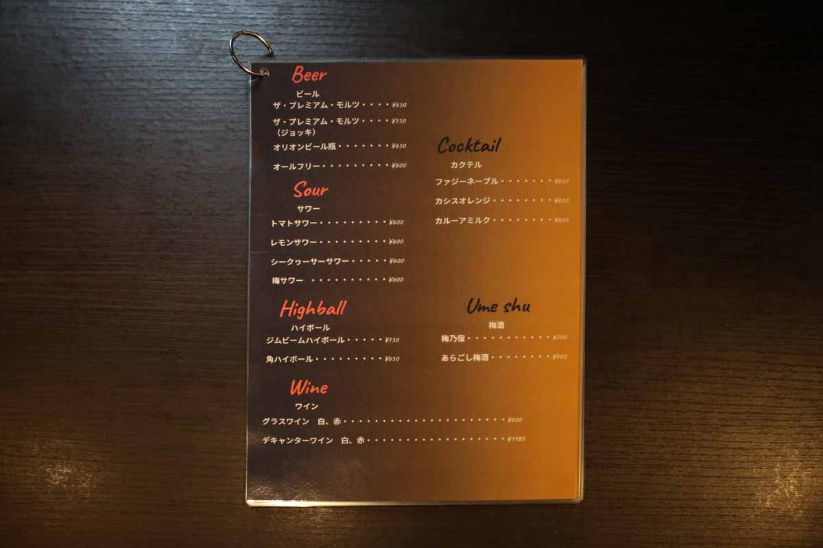 ディナータイムを彩るドリンクメニューも豊富に揃っています。 ワインはもちろん、カクテルやサワー、ウイスキー、日本酒など、幅広いジャンルのお酒が楽しめます。