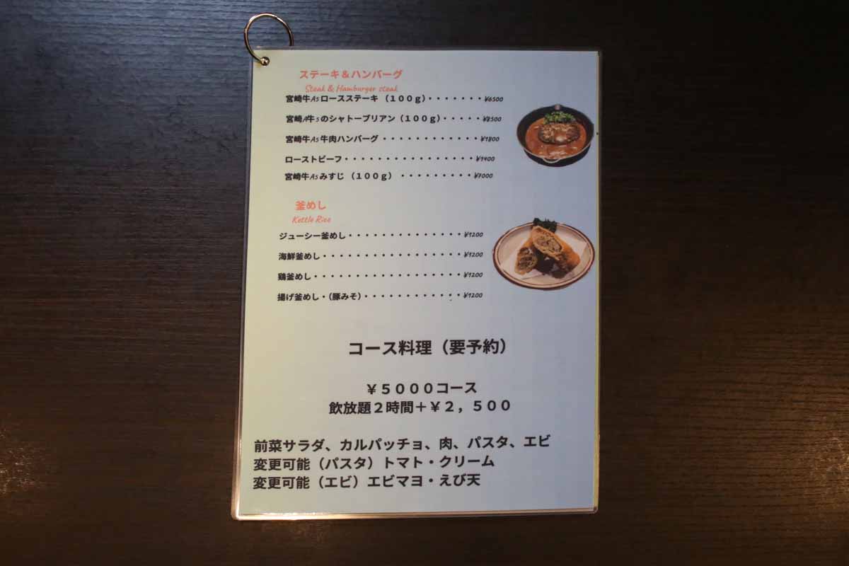 A5ランクの宮崎牛を使ったステーキやハンバーグなども食べられるほか、釜めしもおすすめです。 アラカルトで気になる料理を自由に選ぶもよし、季節の旬を味わえるコース料理で美海DORIの世界観を堪能するもよし、シーンに合わせてさまざまな楽しみ方ができます。