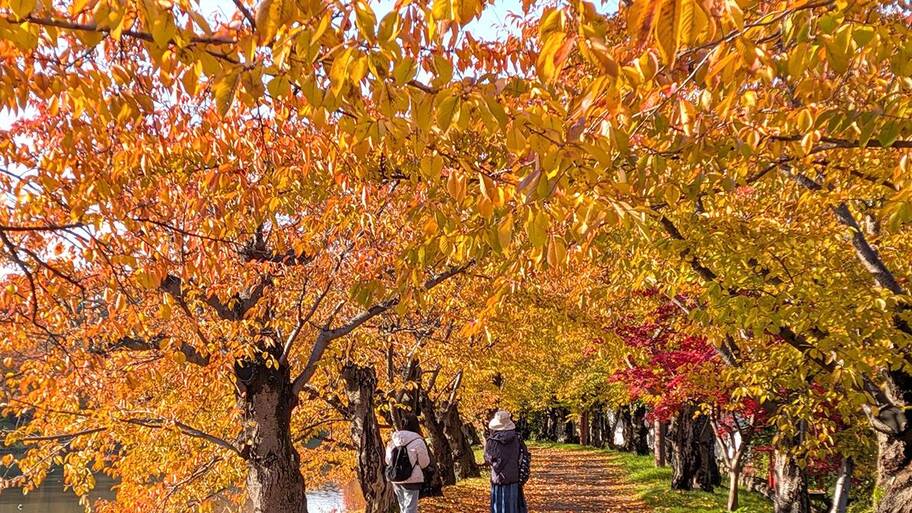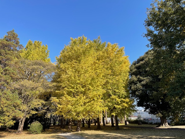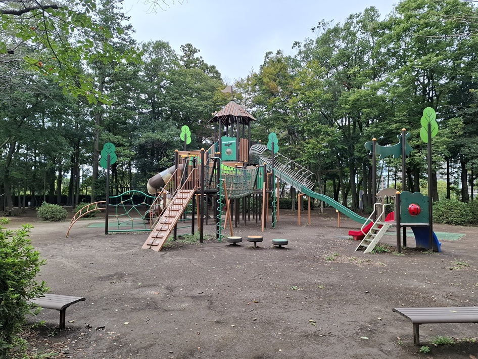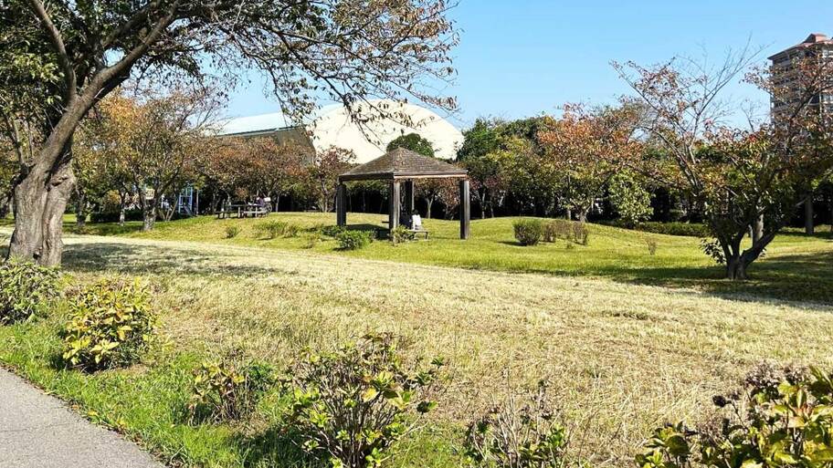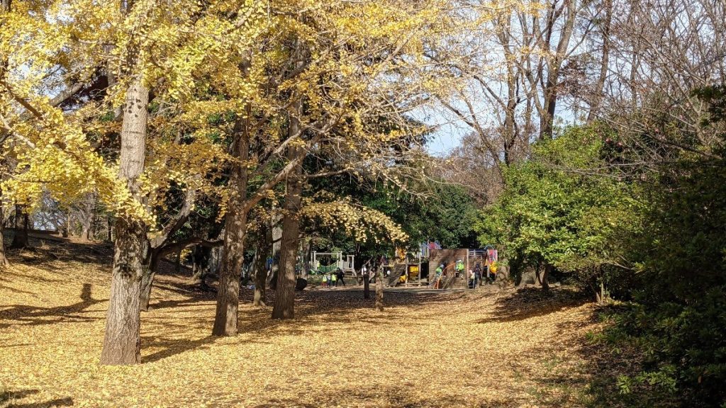 公園のシンボルでもある大型遊具周辺やバーベキュー場近くでは色づくモミジを、野球場の近くではイチョウが黄色に染まる美しい様を見ることができる。アスレチック遊具も充実しており、子どもとのお出かけにぴったり。