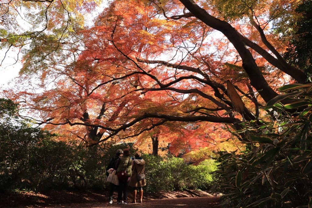 世界三大広葉樹の一つ、ニシキギやイロハモミジが赤や黄に染まる景観は見事。お茶室では季節の和菓子と抹茶のセット(税込み900円)を楽しめたり、11月15日(土)~24日(月・振休)にはライトアップイベントも開催。