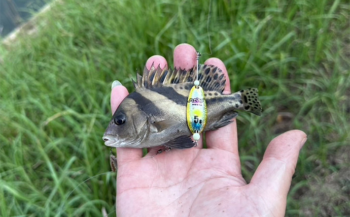 上流から釣り始めると、ハゼ以外の外道がぽつぽつと釣れました(クロダイ・コショウダイ・シマイサキ・メッキ)。