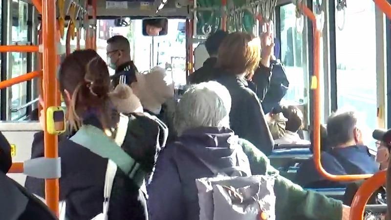 帰宅ラッシュ時のバスの車内をのぞいてみると、大変な混雑!