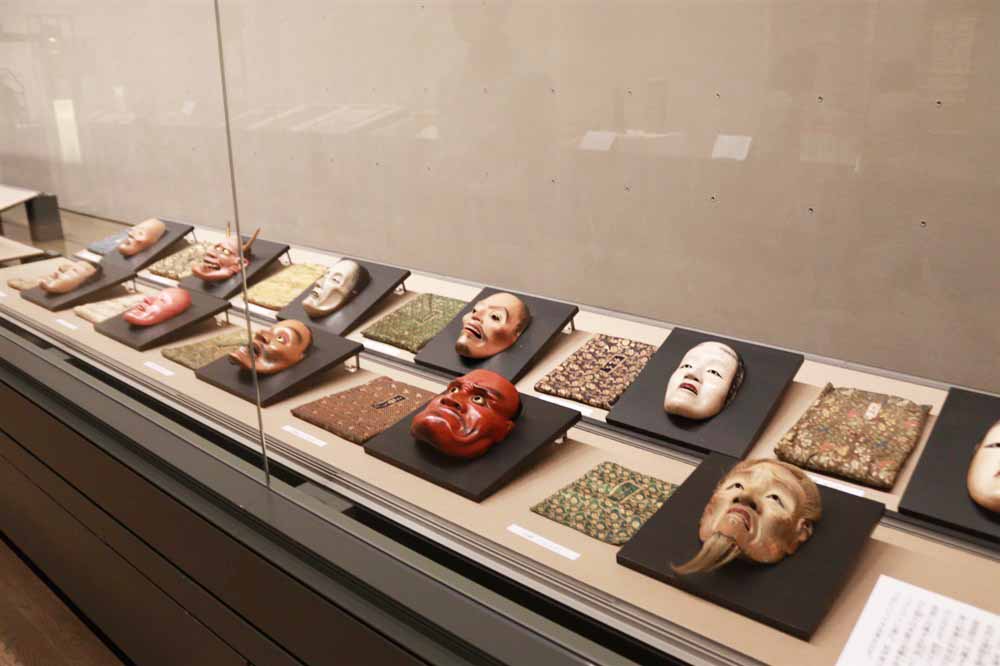 頼宣が愛した愛した芸能「能面」。展示されている11の能面は、付属する御分物目録などから、徳川家康の書用品が頼宣へ分与されたものと分かります。各能面の袋にも注目。