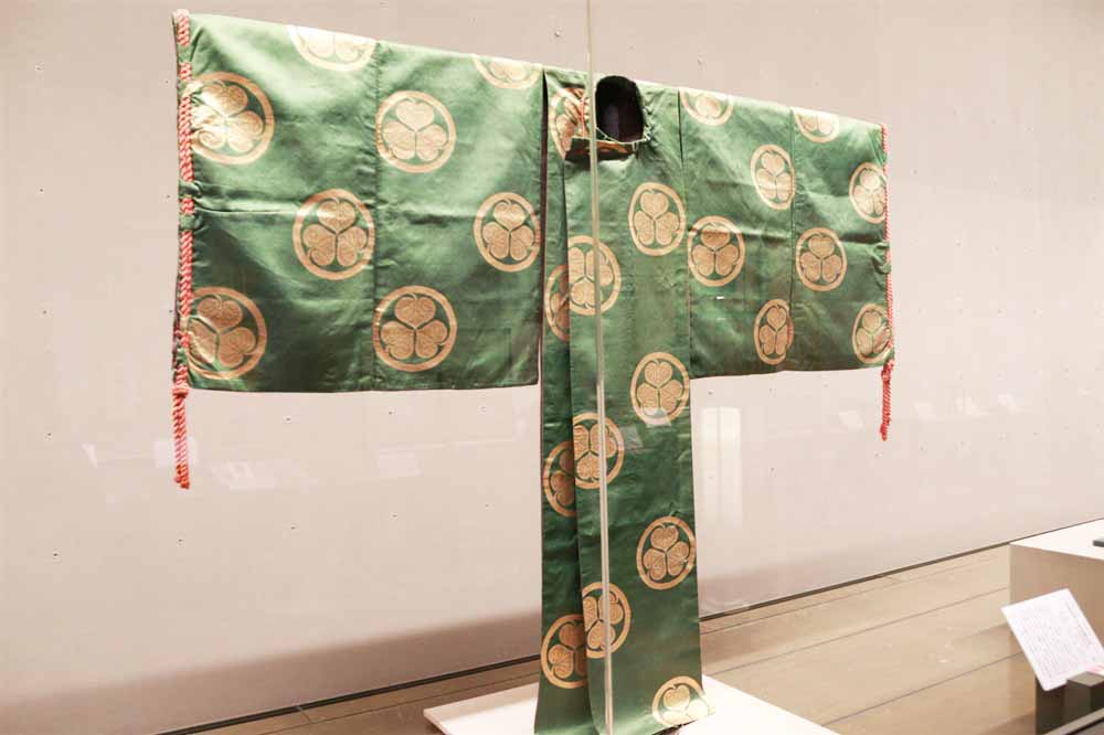 徳川家康が用いた能装束。表地の葵の紋には金糸が用いられています。