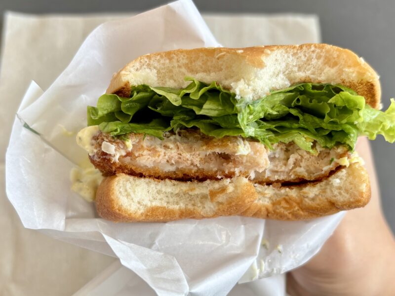 実際に食べてみると、シンプルな構成のバーガーだからこそ、サケの旨みをしっかりと感じられました。タルタルソースも優しめの味で、よりサケの味を際立たせているように思います。