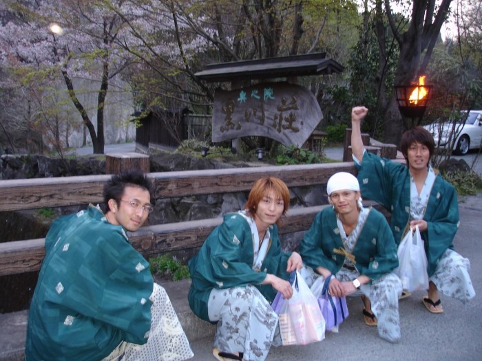阿蘇の大草原で馬とたわむれた後は、予約をしていた黒川温泉の宿「黒川荘」へ。桜が咲く季節。温泉も料理も最高で、女将からは「教授と生徒さんの旅行ですか?」と声をかけられた……さすが博士オーラを放つ先輩である。