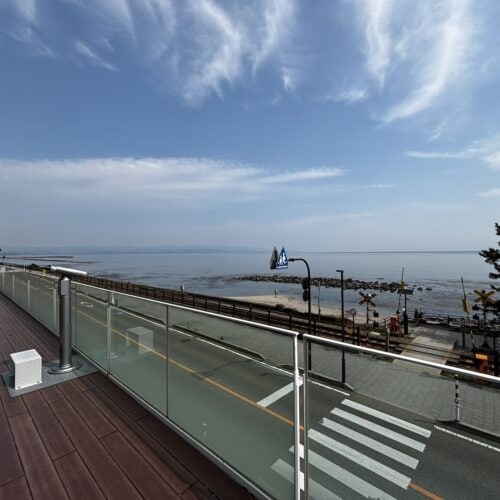 白い船のような外観が特徴的な、富山屈指の絶景スポット。目の前には 雨晴海岸 が広がり、晴れた日には海越しに立山連峰を望めます。“海と標高3000m級の山々が同時に見える” 景色は、世界的にもかなりレア。