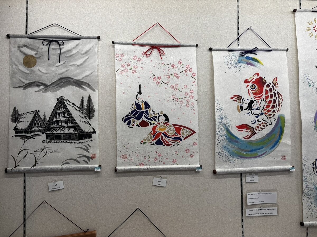 名物は 五箇山和紙。便箋、タペストリー、カレンダーなど、思わず「これも和紙!?」と驚く逸品が並びます。また、和紙漉き体験ができて、五箇山豆腐など郷土料理も味わえるので、“世界遺産の周辺文化まで深く楽しめる” 特別な道の駅です。