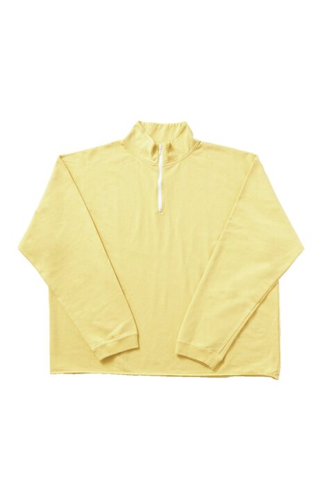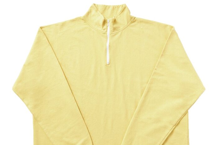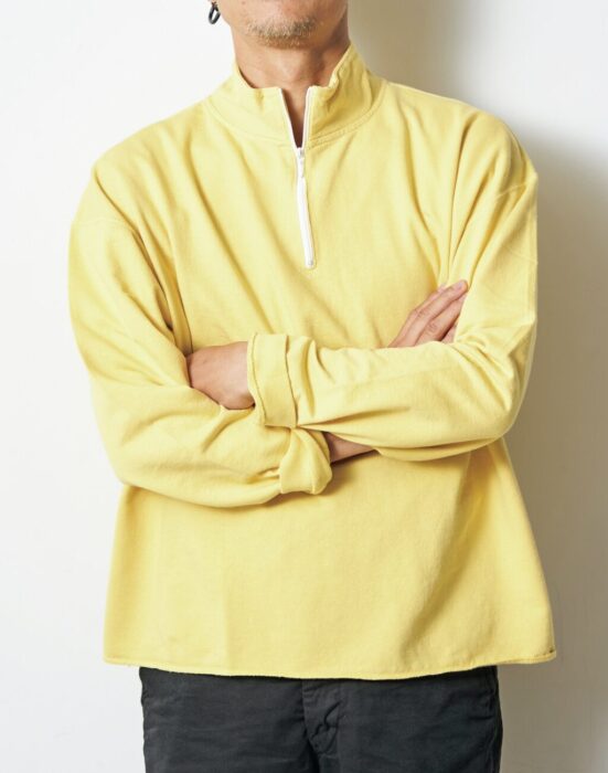 薄手のスウェットにハーフジップを備えており、感覚的にはスウェットというよりもロンT。襟周りはトラックジャージの雰囲気もある。他にもこのイエローと同様に少しフェード感のあるレッドとブルーなどもあり、とても悩んだ。あと少し悩む時間があったら、きっと3色ほど買ってしまったことだろう。インナーにチェックシャツを着込んで襟元や袖口からもチラリと覗かせるのもいいし、オールシーズン使える便利な1着だ。1万3860円(ライディングハイ TEL03-5773-1733)