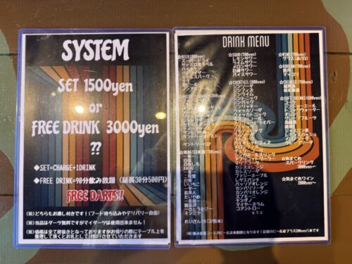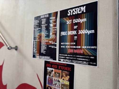 マイダーツは使用せず、店内のダーツをご使用くださいね、との事でした。 ダーツは無料で楽しむことで出来るので、お酒のお供に仲間と盛り上がる事間違いなしです!
