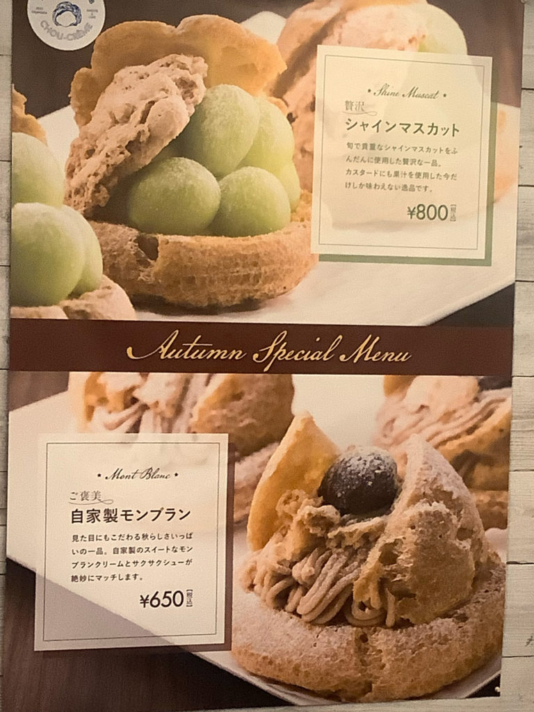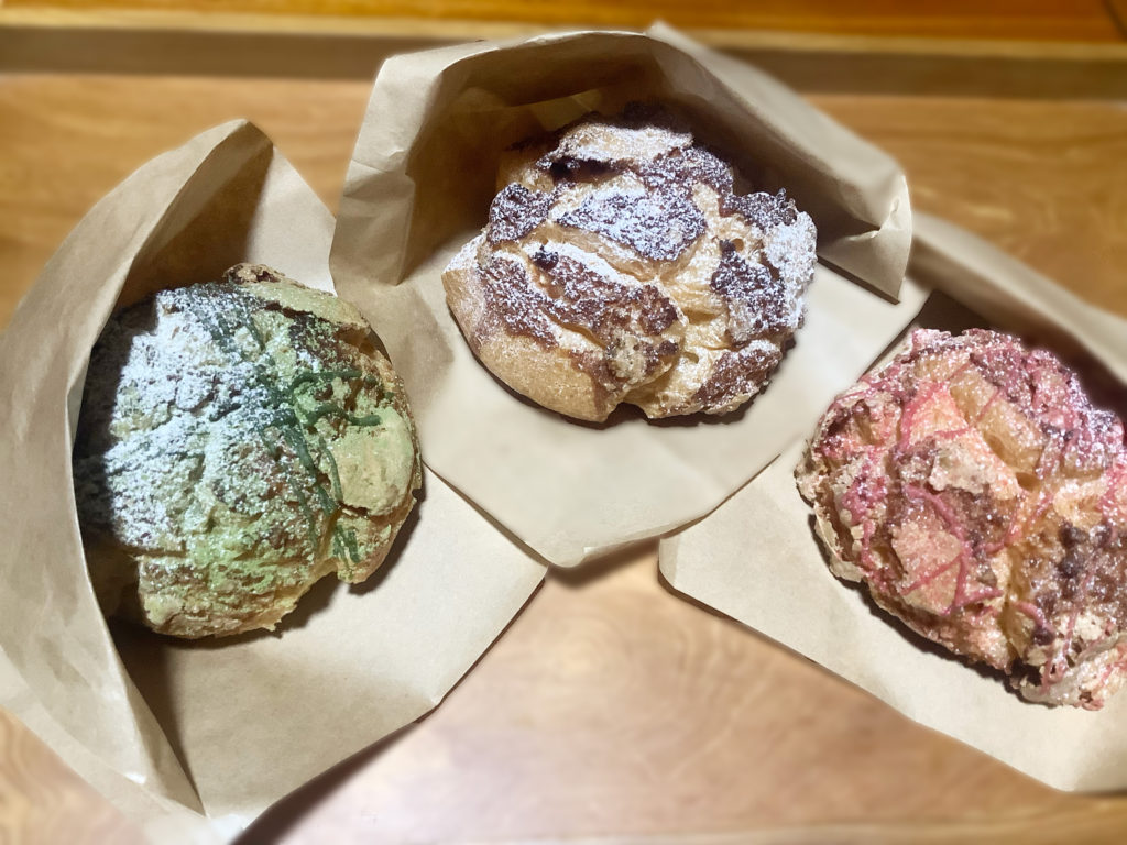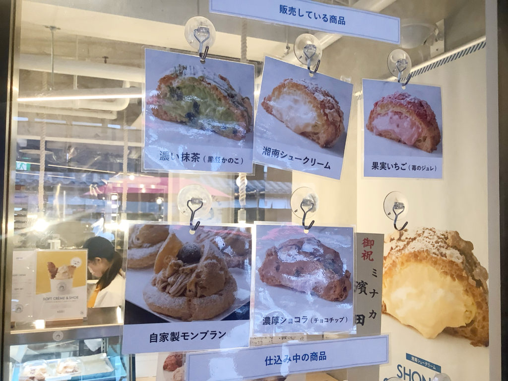 メニューは、シンプルなシュークリームから、いちご、抹茶、ショコラと様々な味のものがあります。