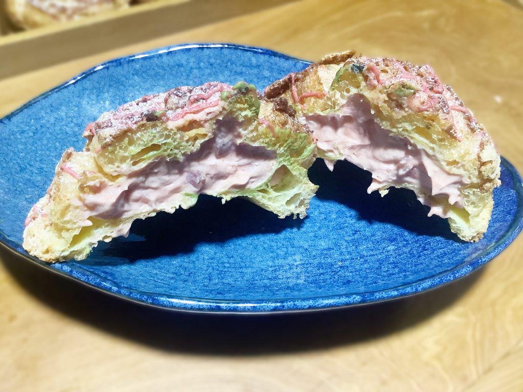 苺風味のカスタードクリームの中に苺のジュレが入った贅沢なシュークリームになっています。