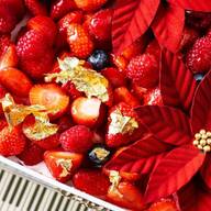 18粒以上のイチゴを贅沢に使用し、カスタードベースのクレーム・ムースリーヌで包み込んだ華やかな一品で、上下をビスキュイ・ジョコンドで重ね、軽やかでやさしい口当たりに仕上がっています。