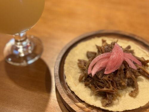 お上品さんなら二口くらいで食べられるサイズ。味の染みたお肉がうんまい!異国の料理なのにしっかりと豚の角煮が味わえる不思議な感覚。そして、宮城県にあるBLACK TIDE BREWINGのクラフトビールは、さまざまなアロマが重なり合って、濃厚でその味の複雑さにめまいがしそうな程!(実際アルコール度が7度と高め)クラフトビール好きにはたまらないと思います。
