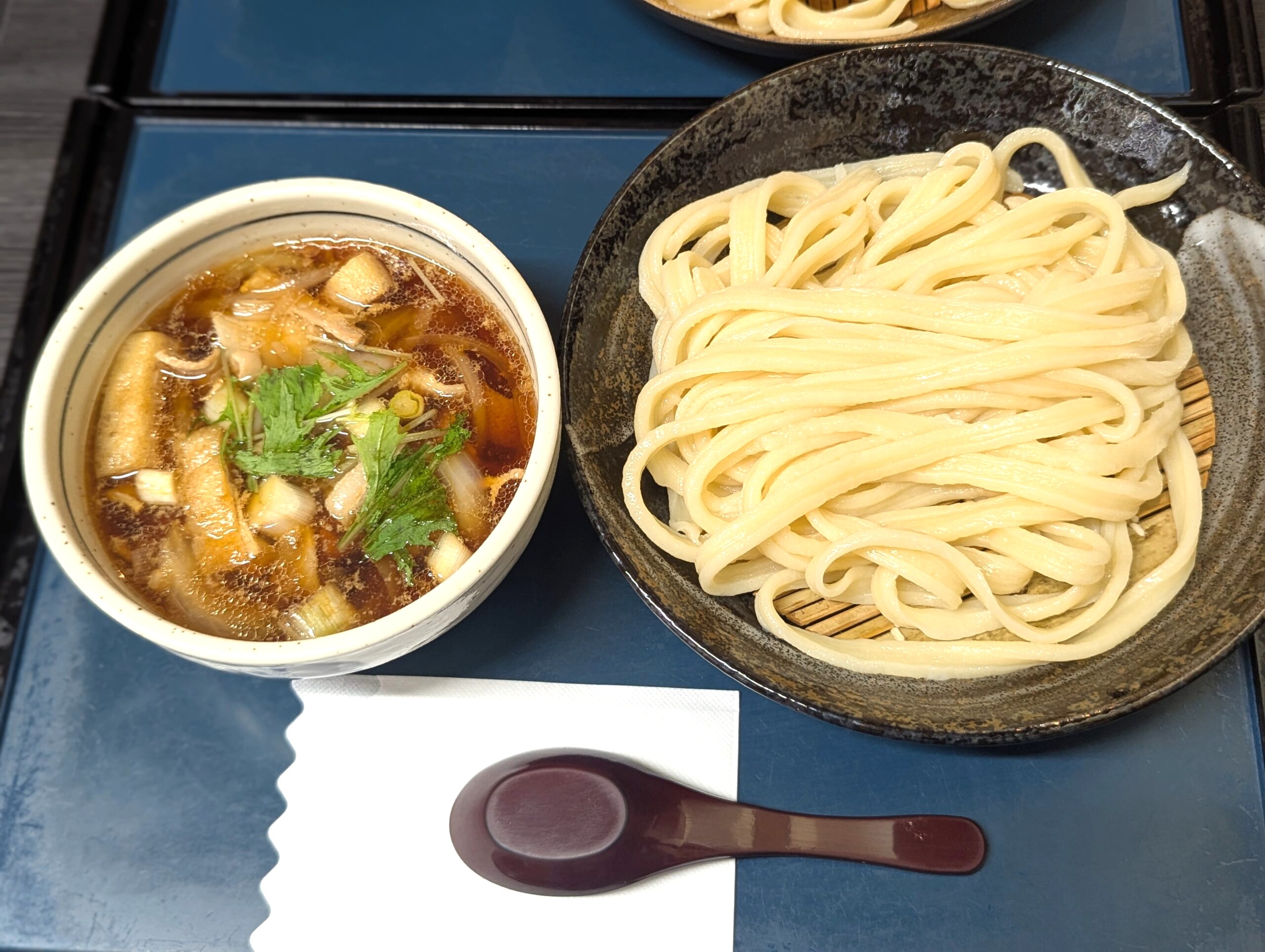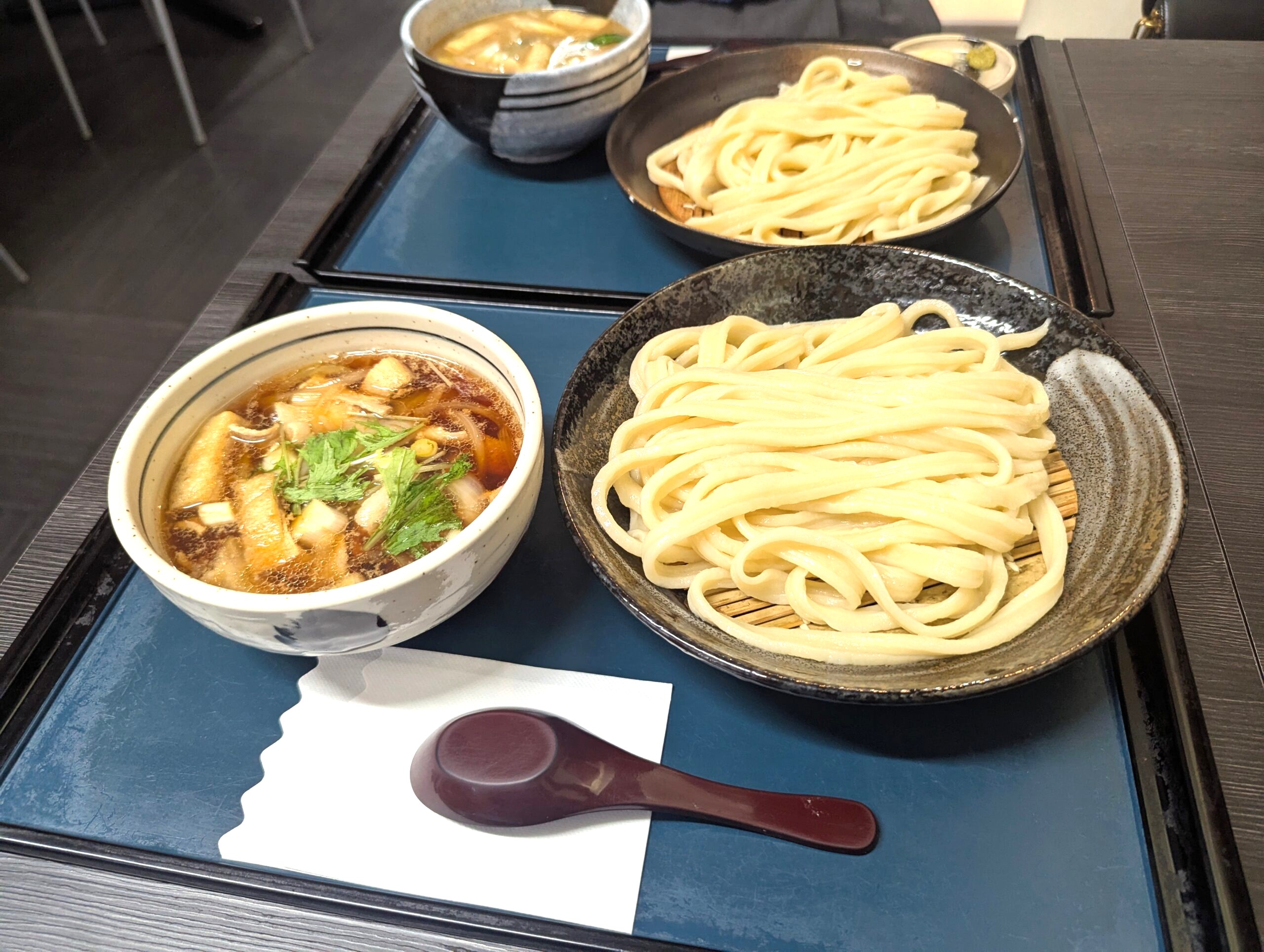 どちらのメニューも甘みとコク深い濃厚なつけ汁で、最後の一滴まで飲み干したくなる味わいです。