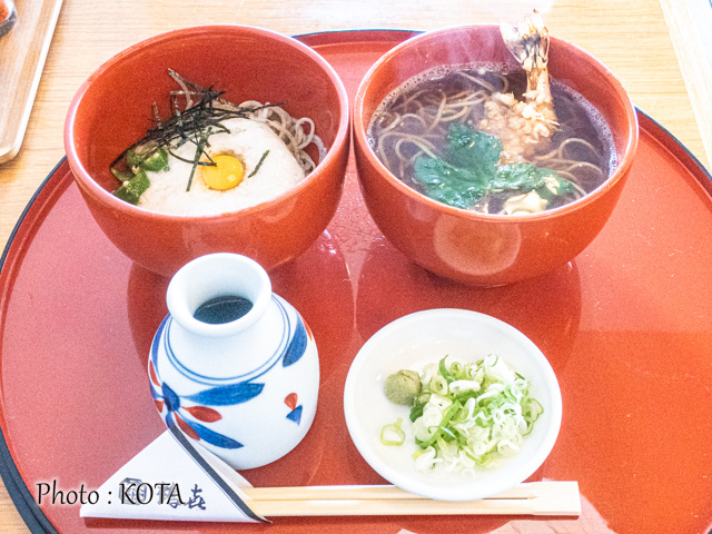そばとゴハンのセットメニューでなく、2種のそばがセットになっている。
