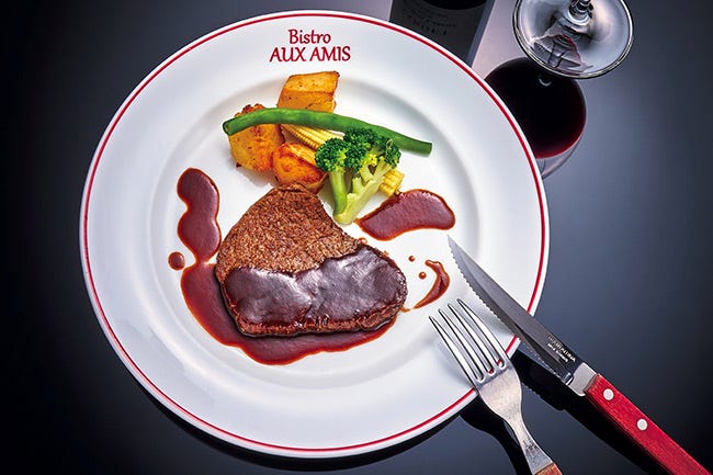 ビストロ オザミでは、特別感あふれる「特選 黒毛和牛フィレのステーキ 赤ワインソース」(9,900円)を。厳選された黒毛和牛のフィレ肉を使用し、赤身でありながら、きめ細かいなサシが入っていて、驚くほどの柔らかさ。オーブンでじっくり丁寧に焼き上げるステーキを味わってみては?