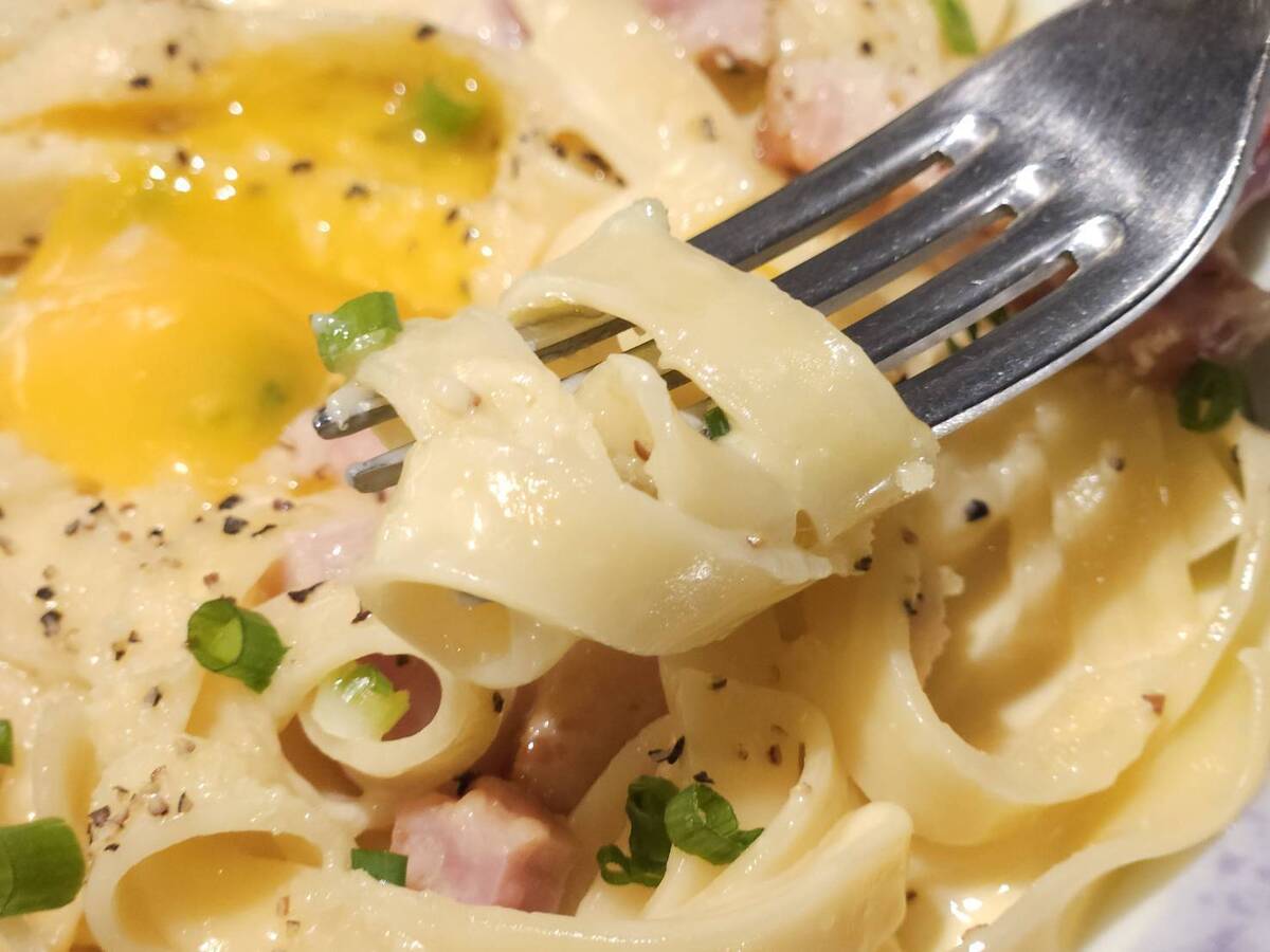 ベーコンの旨み、ブラックペッパーのスパイス感もしっかり感じられる本格的な味わいのカルボナーラになっています。