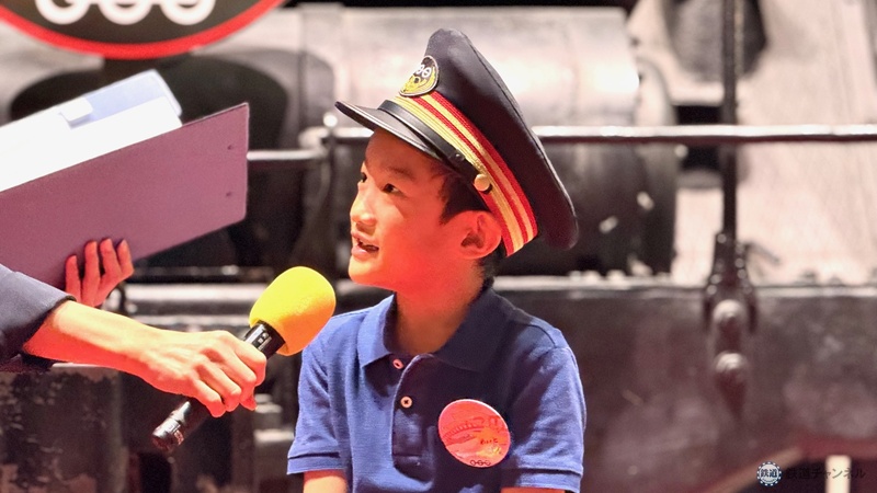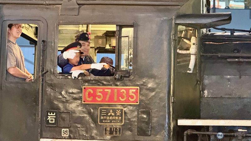 C57形蒸気機関車転車台回転実演では「将来は電車の運転士になりたい」と話す結翔くんが機関士として機関車に乗り込み、汽笛を鳴らす特別体験も。夢に一歩近づいた、幸運な1日になったようです。