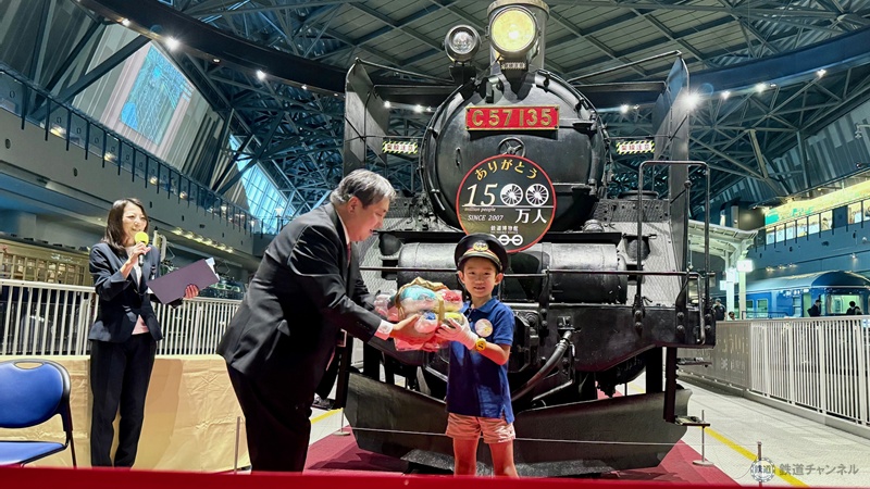 鉄道博物館が来館1,500万人を達成! 記念セレモニーでは7歳の来場者が機関士役となりC57形式蒸気機関車の汽笛を吹鳴(埼玉県大宮市)