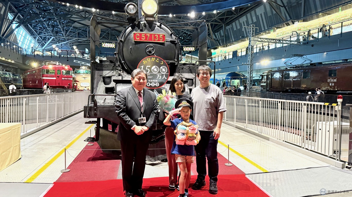 埼玉県さいたま市大宮にある「鉄道博物館」は、2025年10月1日に来館1,500万人を達成。記念セレモニーが行われました。1,500万人目となったのは、7歳の誕生日当日に同館を訪れた木下結翔くん。鉄道博物館を象徴するC57形蒸気機関車の前での記念セレモニーとなりました。