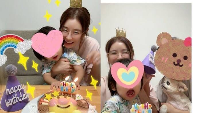 続けて「私から1ミリも離れない次男を抱っこしたまま…長男が夫とお風呂に行っている間にサプライズのケーキ」と明かし「注文してしておいた冷凍のチョコレートケーキ」を準備したことを報告。「家を出る直前まで冷凍庫に入れておき出る時にはクーラーボックスに入れてホテルまで持ってきました」と説明し「ちょーど解凍されて食べごろになってました」とコメントした。