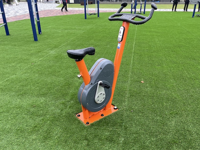 最後は王道ともいえるエアロバイク。下半身を強化できたり、軽い有酸素運動にもなったりします。2台設置されているので、家族や友人で分かれて乗るのもアリですよ。
