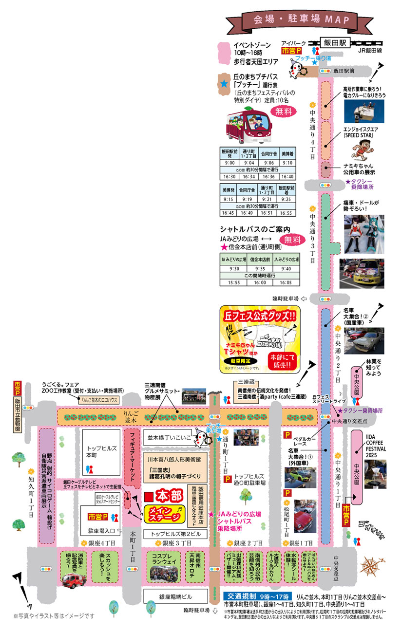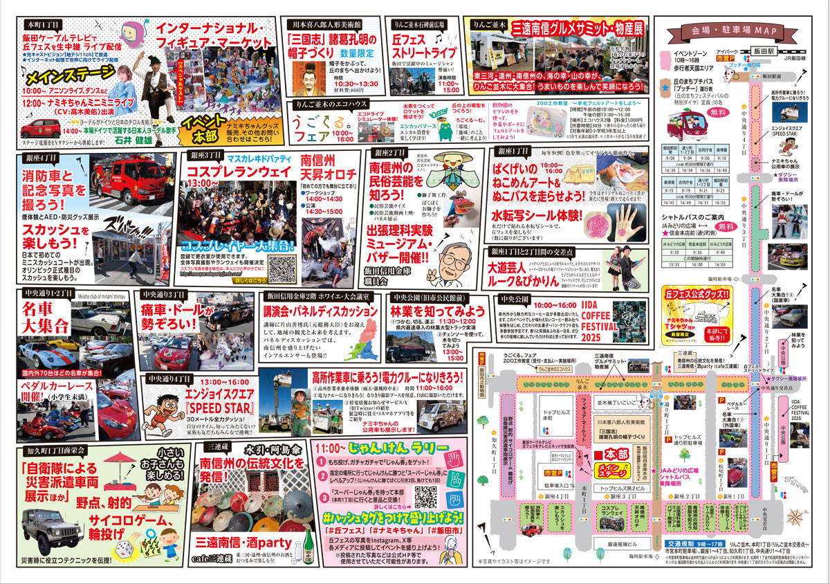 2025年11月3日(月・祝)に長野県飯田市「りんご並木」「本町1丁目」「銀座1〜4丁目」「知久町1丁目」「中央通り1〜4丁目」「中央公園」と市街地一帯を会場に『第17回飯田丘のまちフェスティバル』が開催。