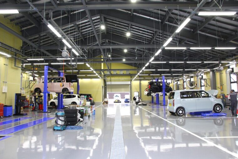 工場を覗かせてもらうと、ピッカピカなスペースにリフトを8基完備。オイル交換や車検作業など、ひとつひとつ丁寧に作業する姿を垣間見ることができました。