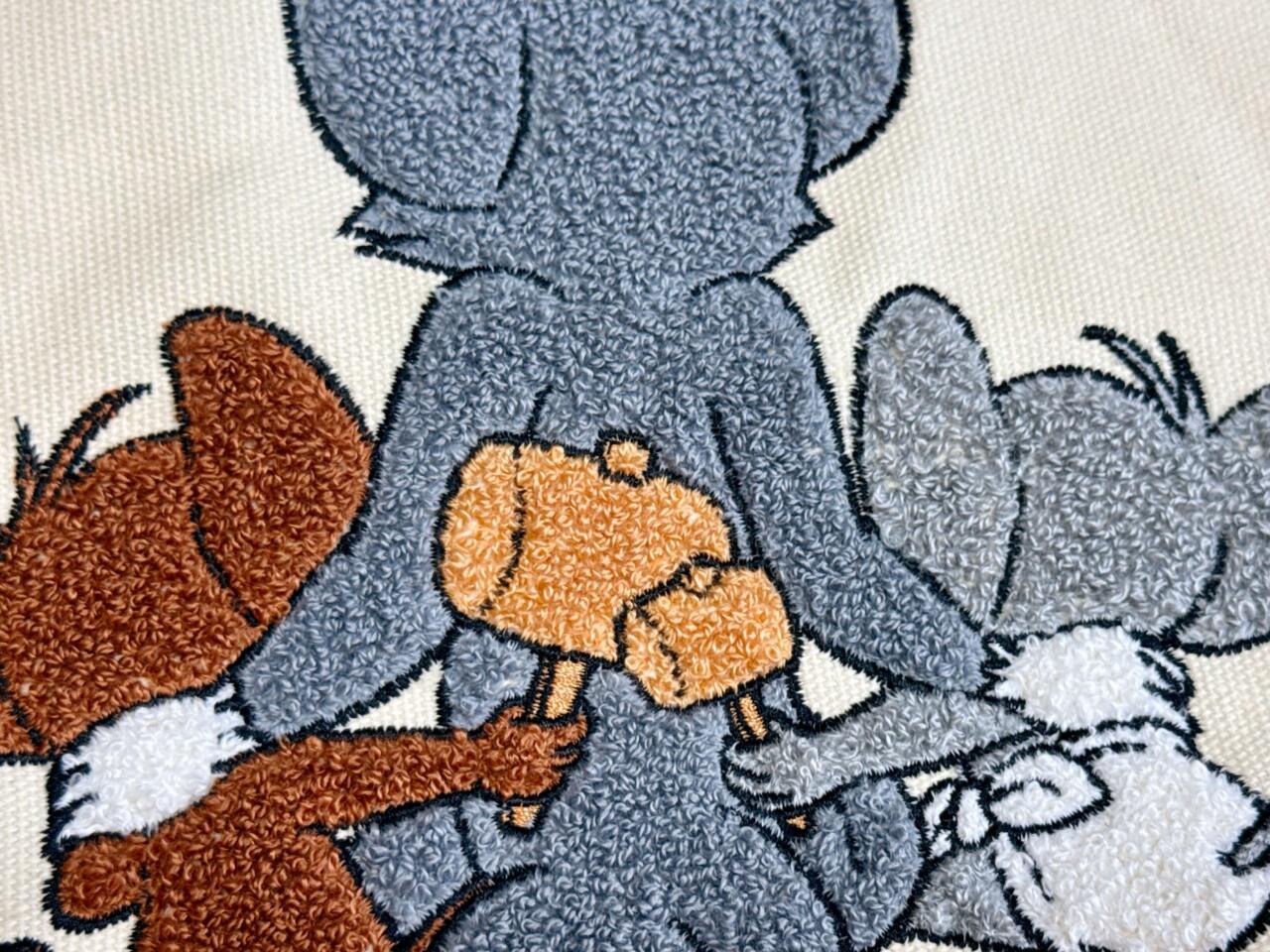 大きなチーズを持ってお顔が隠れているジェリーの姿が刺繍で描かれており、なんともキュート!細部まで美しい刺繍で、クオリティもGood!