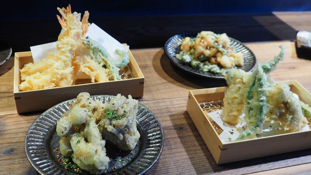 さらに、「米福」仕込みの天ぷらや定番のお寿し、変わり天ぷらなど、季節ごとに様々な逸品を用意。30種以上の日本酒やスパイス焼酎も取り揃え、昼は軽やかに、夜はしっとりと、時間帯に合わせた楽しみ方を提供する。