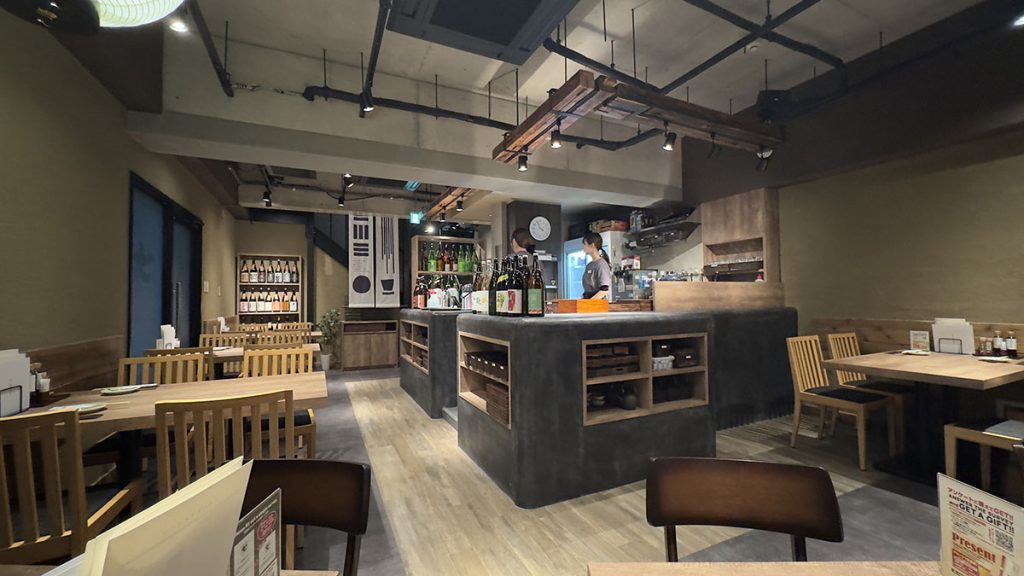 店内は古材を活かした落ち着きのある設えが特徴で、地上階と地下を合わせて約70席を有する。京都の喧騒から一歩足を踏み入れると、そこは観光客やビジネスパーソンがほっと一息つける“静かな異空間”が広がる。