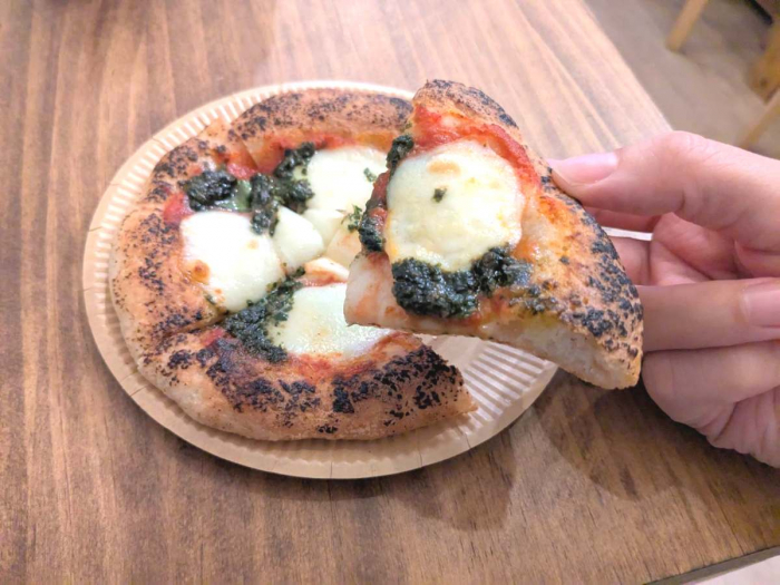 「マルゲリータ」は手のひらにちょうどのるサイズで、とろけたモッツアレラチーズと周りの生地の焦げ目のコントラストがたまりません。