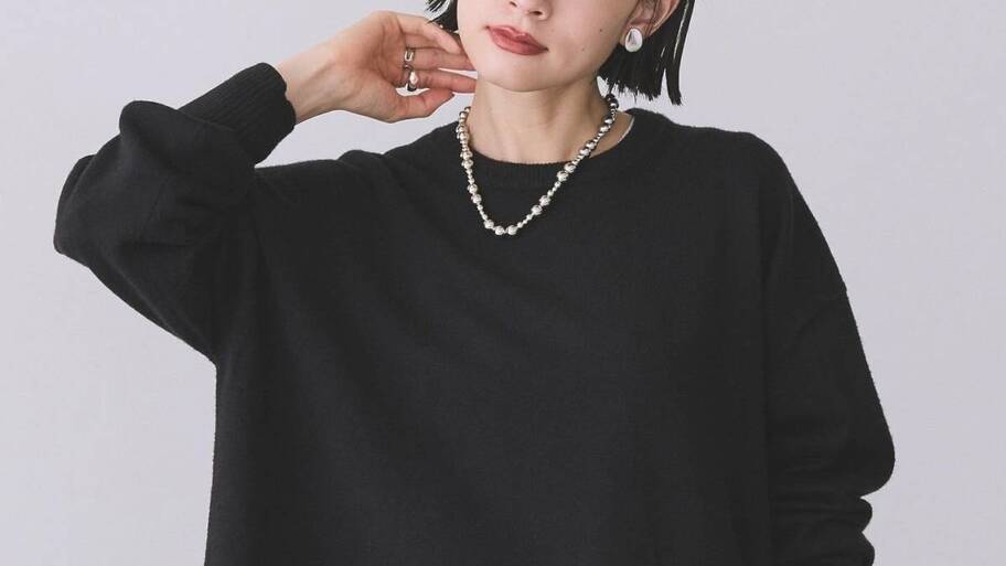 胸元のデザインが目を引くニットは、オーバーサイズを選ぶと今っぽく着こなせます♪