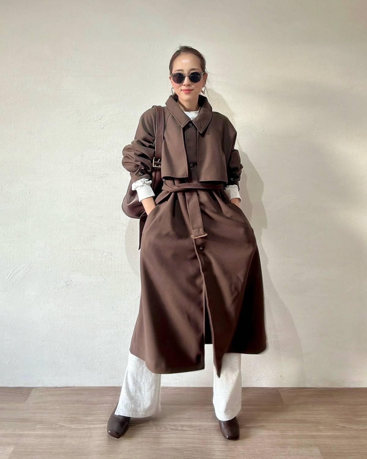 11月の気候にピッタリなブラウンのロングコートは、一枚で存在感を放つ主役アイテム。