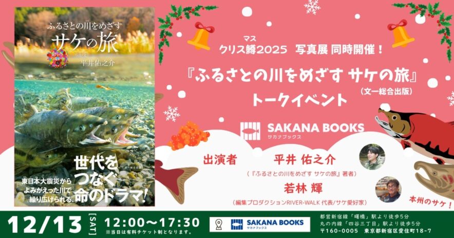 サケに焦点を当てたトークイベント・クリス鱒2025『ふるさとの川をめざす サケの旅』が12月13日(土)、東京都新宿区にあるサカナに特化した本屋・SAKANA BOOKS(サカナブックス)を会場に開催されます。