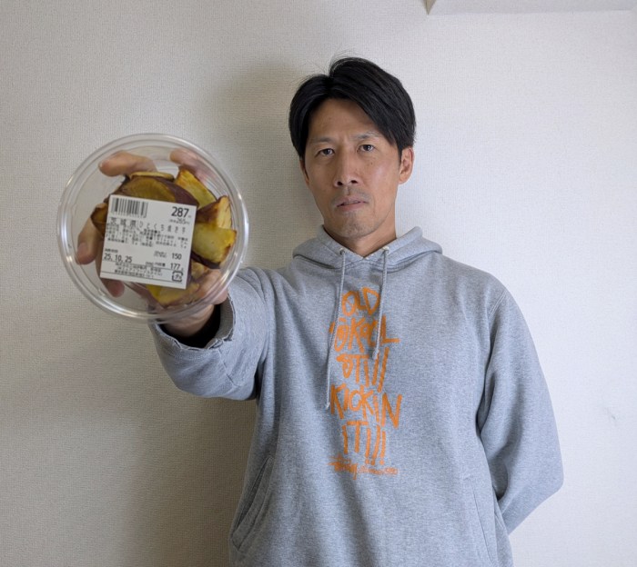 Yoshio「正直ね、僕、あまり焼き芋食わないですよ。それで訪ねたライフでは、焼き芋は11月からって言われちゃったんだけど、スイーツとしてコレがあったので、コレを選びました。芋そのままよりも、こっちの方が羽鳥さんは好みのはず」