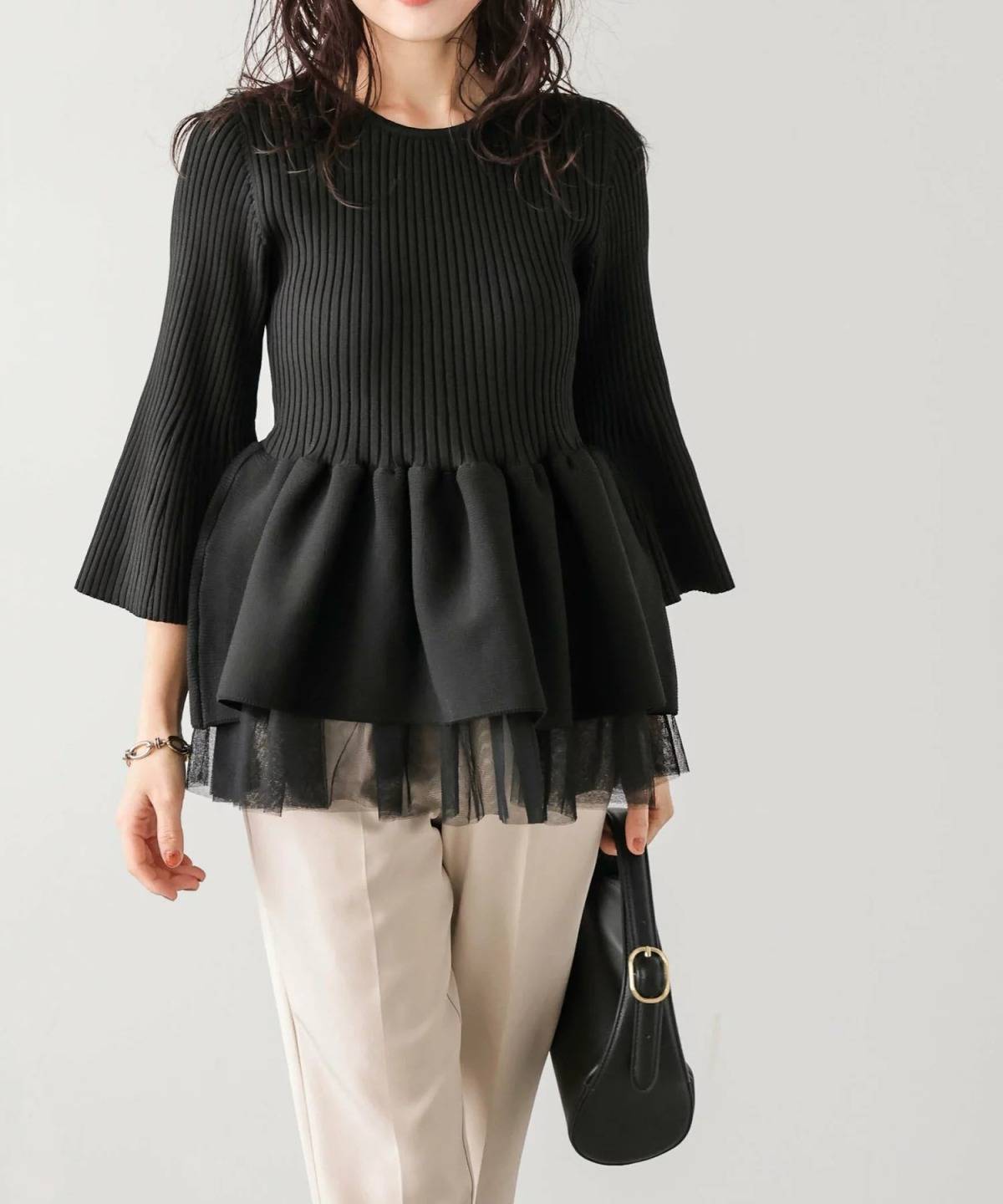裾のチュールがポイントのペプラムシルエットのトップス。