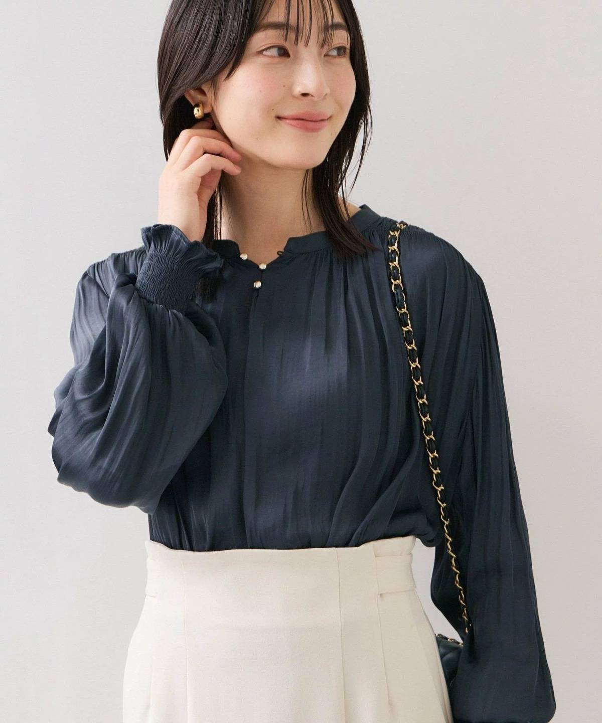 ふんわりとしたボリューミーな袖のデザインが2025年秋らしい印象のトップス♪