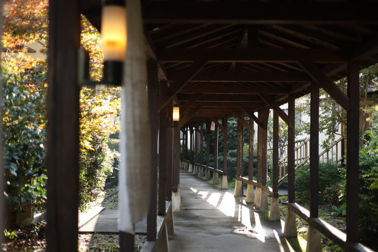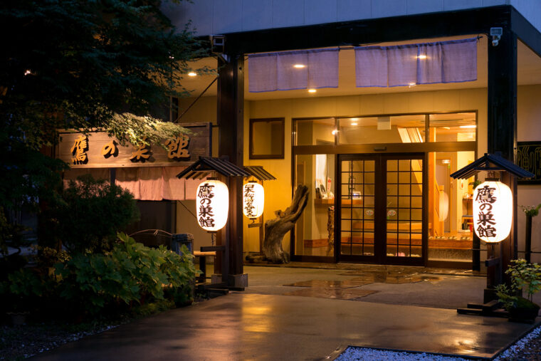 紅葉の名所であり、新潟県景勝100選にも指定されている鷹の巣吊り橋を渡っ た先にひっそりと建つ本館は静寂と風格をまといます。