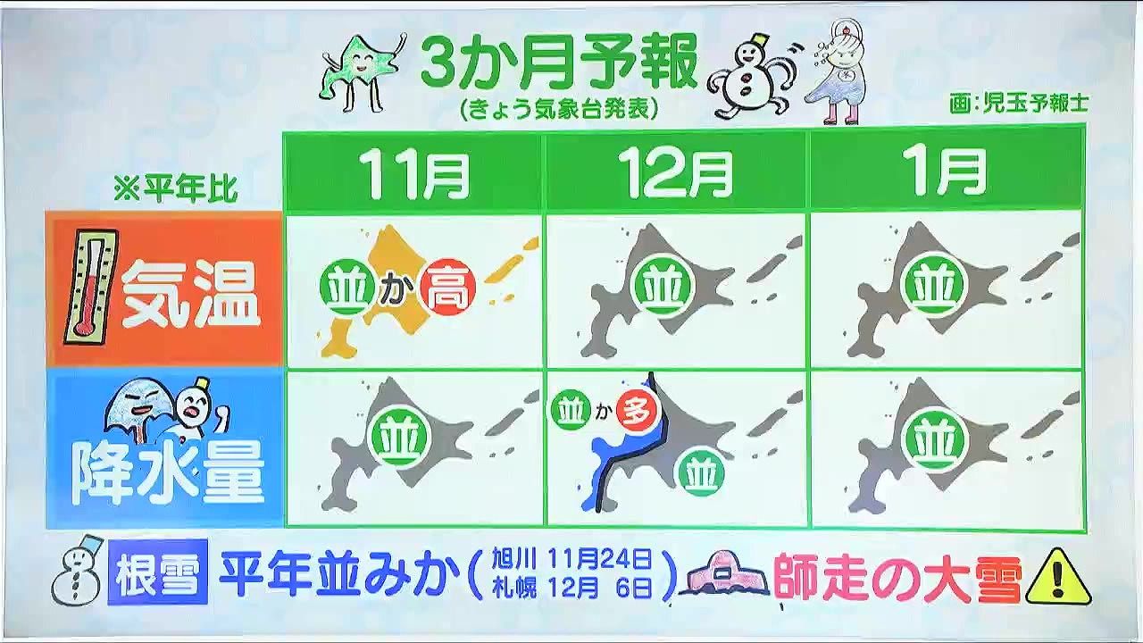 冬の入り口が見えてきましたが、きょう21日(火)3か月予報が発表されたんですね。気象台から発表されました。このまま冬がやってくるのでしょうか?早速見ていきましょう。