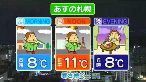 札幌や後志地方で明け方まで雨や雪が降るでしょう。日中は道南方面を中心に晴れる見込みです。寒さが続きます。ストーブの消し忘れに気をつけてください。