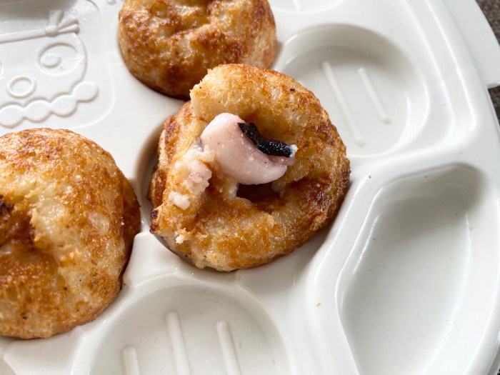 中はほどよくトロリ……それでいながら形が崩れないようにまとまっているから、しっかり作られている印象を受けた。また、タコも普通以上でよき。