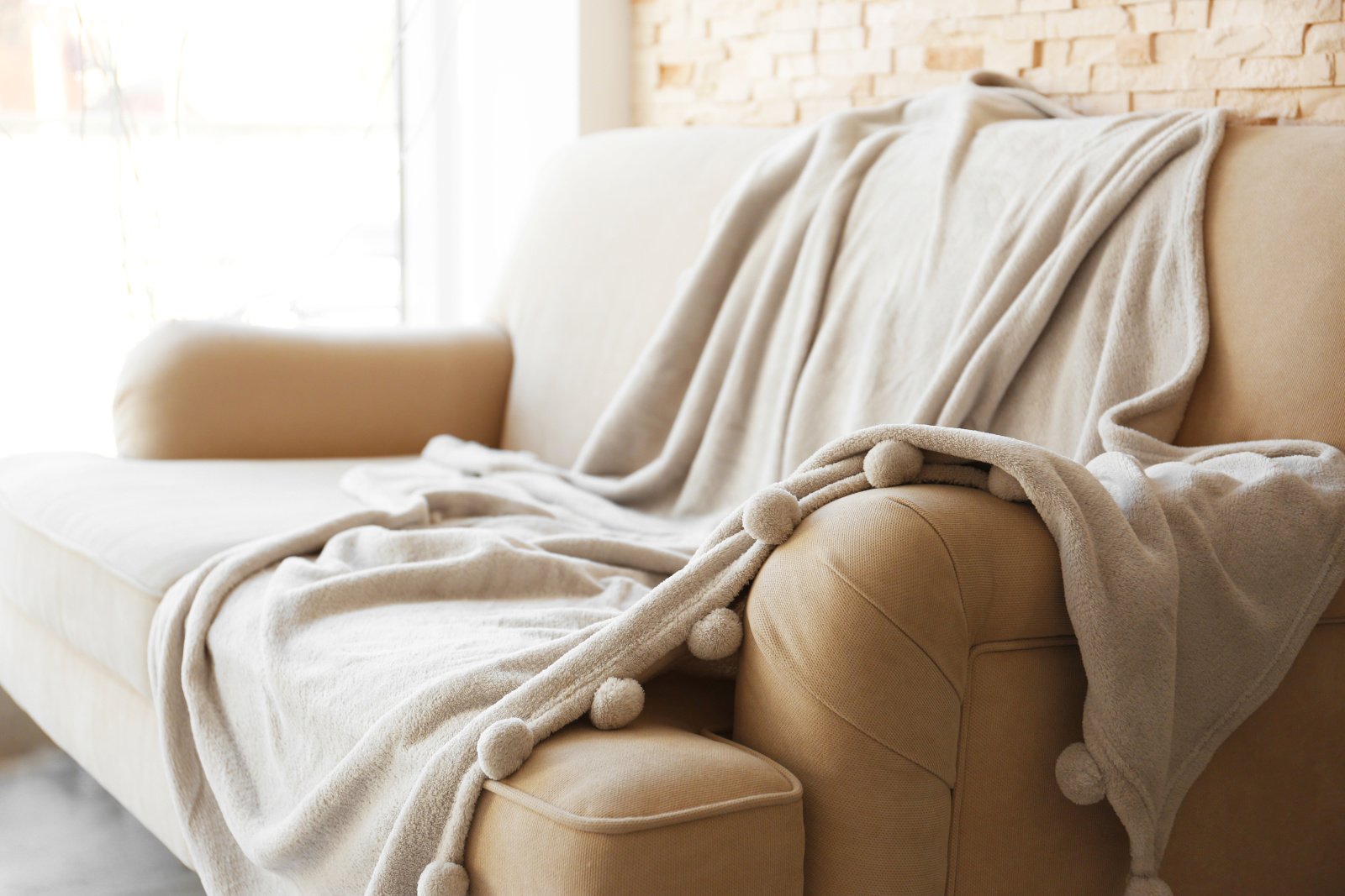 これから肌寒くなってくると、ブランケットを使う頻度も増えてきます。カゴに丸めて入れて隠すのもひとつですが、家族がいるとつい置きっぱなしになってしまうのは、わが家だけではないはず……。
