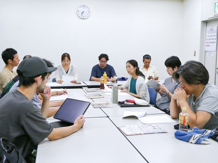 出演者らは台本に沿ってセリフを読み上げ、自らの役を確認。途中小林さんからは、それぞれの役に合わせて「セリフを途切らせないように」「大きな声で」などとアドバイスの声が飛んだ。一通り台本を読み終えると、全員で振り返りを実施。役の個性をかみ砕きながら、セリフの発し方などで意見を交わし合った。はぁちゃん役の出演者には、「独り語りしてしまう人物だから、エンジニアのような喋り方がいいんじゃないか」といった助言が出て、出演者全員で役のイメージを膨らませていった。