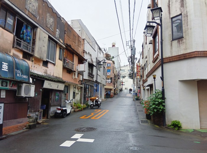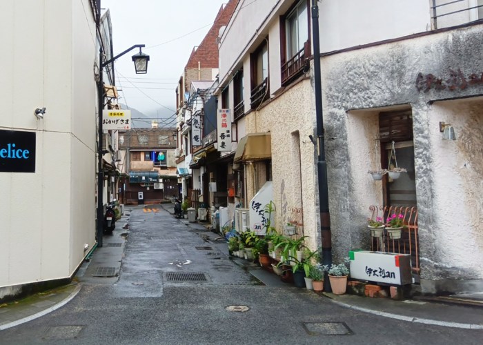熱海の駅前を離れ、南西に坂を下っていくと、海沿いに観光的なキラキラとは一線を画した建物が並ぶ一帯がある。ここが「糸川べり」と呼ばれたかつての赤線地帯だ。なお、現在Googleマップ上では「糸川旧特飲街」と表示されている。
