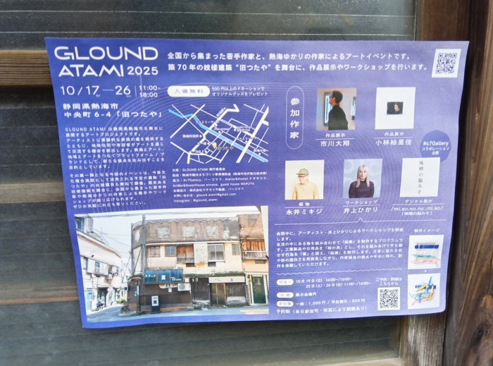 なお、私が行ったのはギャラリー最終日の10月26日だったのでGLOUND ATAMIの期間はすでに終わっている。ただ、このイベントは『旧つたや』の再生プロジェクトの一環で、最終的にはここに個性的な店を集めて人を呼び込む新たな拠点をつくることを目標としているようだ。