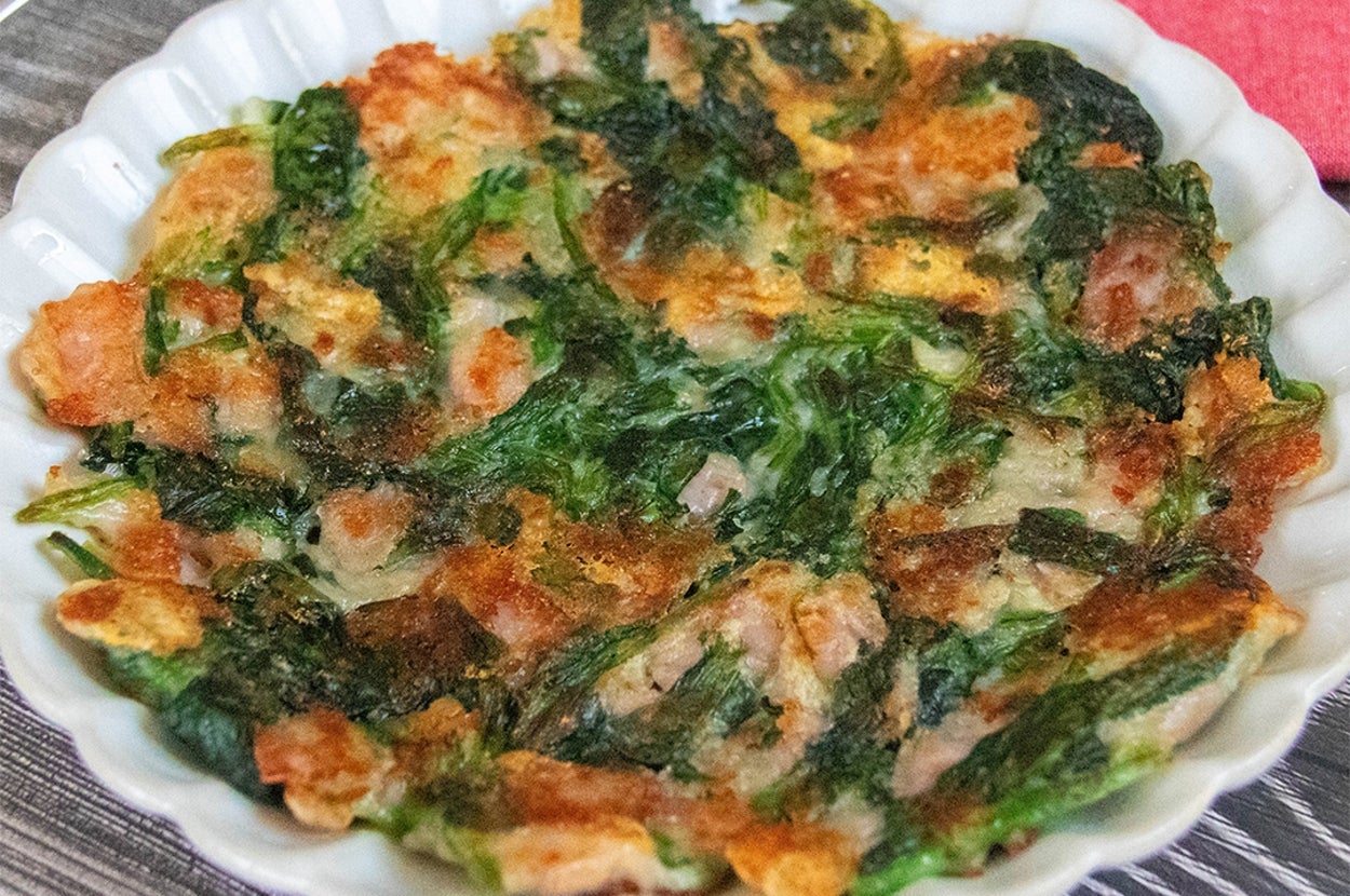 【ほうれん草買ったら絶対作って】「クセになるおいしさ!」「10分で作れて助かる」混ぜて焼くだけ!ほうれん草とベーコンのガレットレシピ